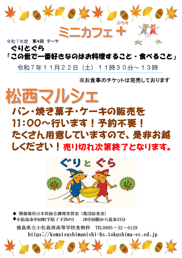 2025年11月14日 20時30分令和7年11月30日(日)、松西子どもカフェを開催します!