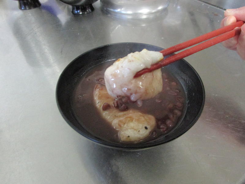 年始 初めての部活動では、もち米を使って餅をつき、『きなこ付きあんもち』や『ぜんざい』を作ってみんなで食べました。
