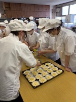 2・3年生が1年生にパンの包餡の仕方を教えてあげたり、「ピザ」の販売に一緒に行ったり、微笑ましい姿が見られました。上級生がやさしく丁寧に教えてあげながら、いろいろな料理やお菓子づくりに取り組んでいきます。
