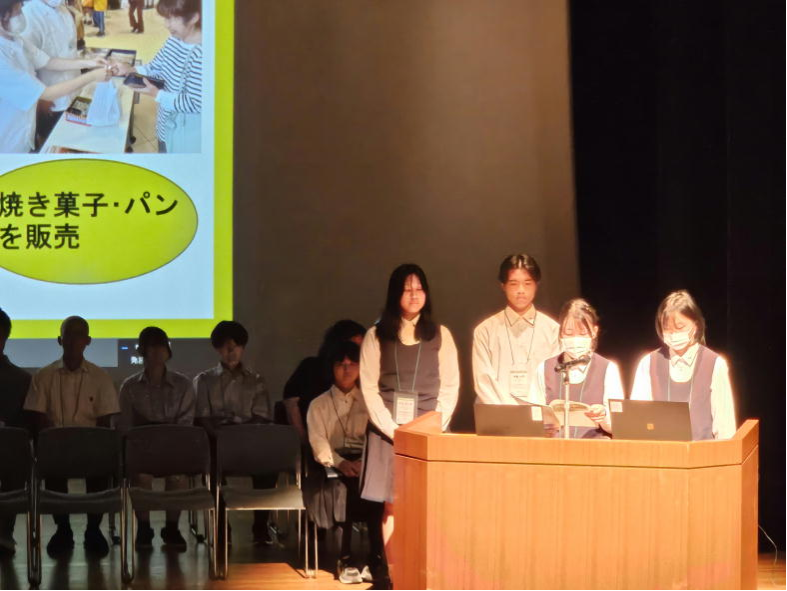 大会2日目には高校生による「中干ししない」米づくりの報告も行いました。また、6名の生徒がカヌレなどの米粉を使って開発したお菓子を販売しました。大変好評でした。