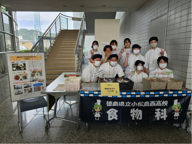 小松島市産業振興課および県内企業や農家と連携し、徳島県の産品を活用した商品の開発・イベントへの参画を通して、地域と関わり、地域から学ぶことで郷土愛を育み、地産地消などの人や社会・環境に配慮した消費行動を目指しています。