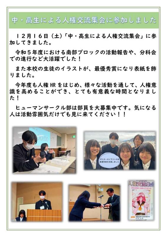 令和6年12月21日、人権交流集会に参加しました。