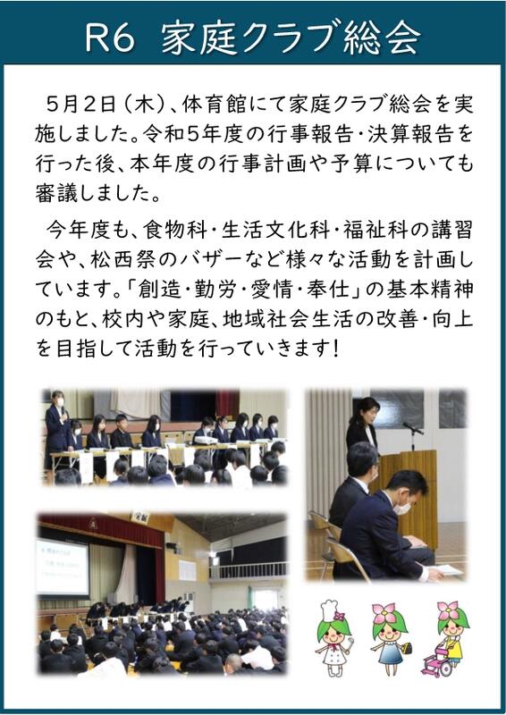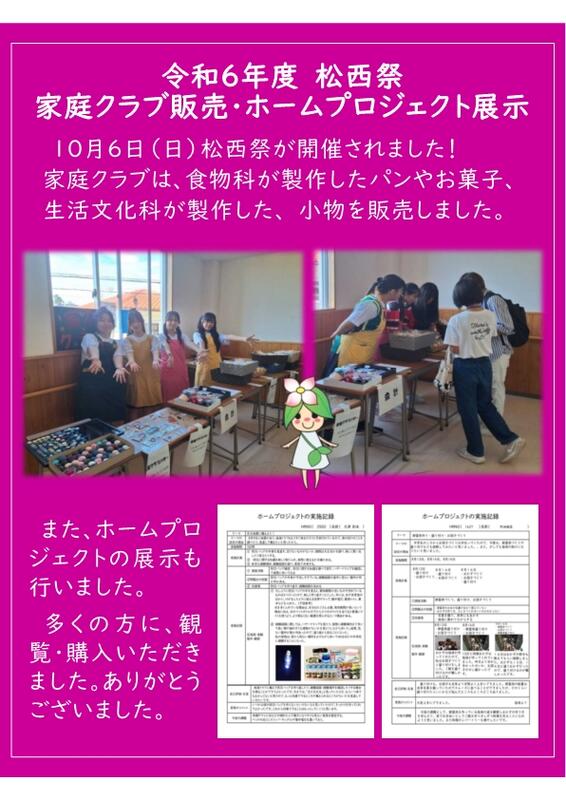 令和6年度 松西祭 家庭クラブ販売・ホームプロジェクト展示