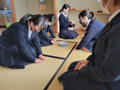 外部講師の中原先生の指導の下、毎週1回お茶を点てています。夏休みは、校外で研修会もあり、他校との交流もできるので楽しみです。