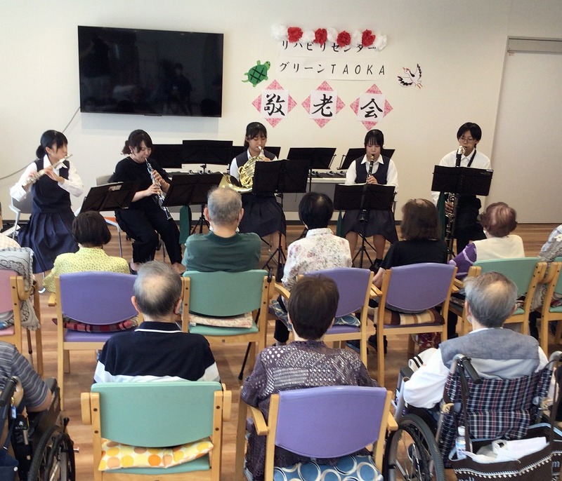 9月16日(月祝)にグリーンTAOKAさんで行われた敬老会に、3年生4人と参加しました。