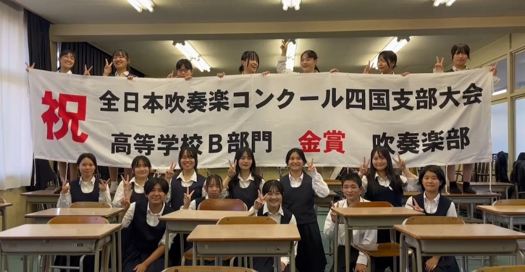 本日より、校門前に先日行われた吹奏楽コンクール四国支部大会の横断幕を飾って頂いております。